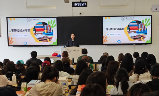 张德艳结合自身初试成绩与备考历程,分享了复试准备及综合能力提升的心得。她还就资料收集与成本控制等实用问题给出了具体建议。三位同学的分享内容详实、针对性强,既有宏观规划又有细节操作,现场同学认真聆听、积极互动,反响热烈。