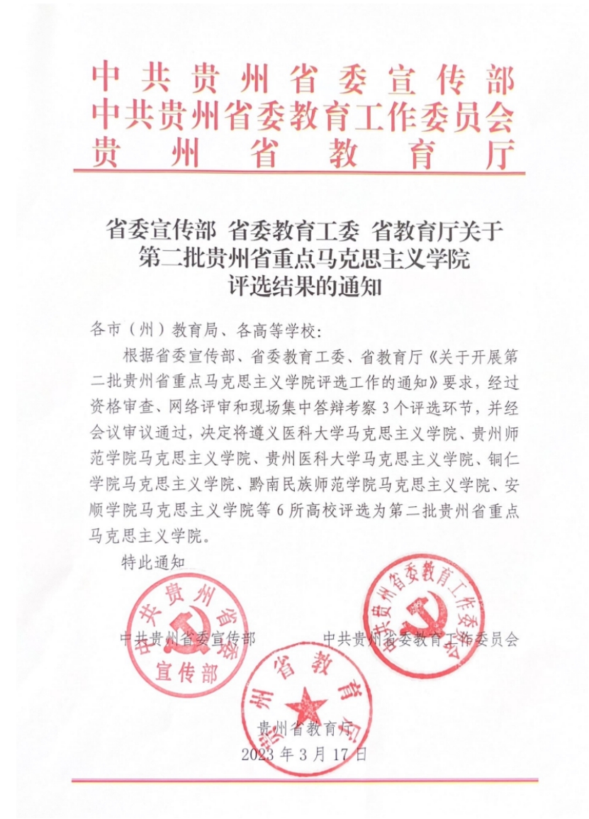 近日,根据《省委宣传部 省委教育工委 省教育厅关于第二批贵州省重点澳门足球投注 评选结果的通知》,我校澳门足球投注 获评第二批贵州省重点澳门足球投注 。近年来,我校充分发挥思政课主渠道主阵地作用,深入推进省级重点澳门足球投注 建设和党史党建研究...